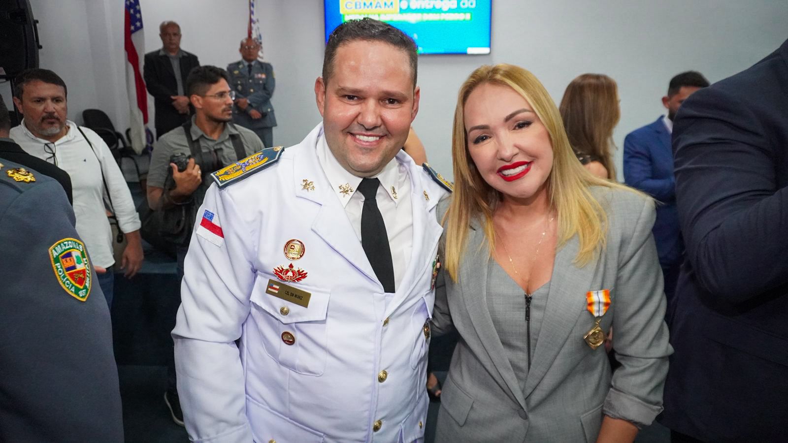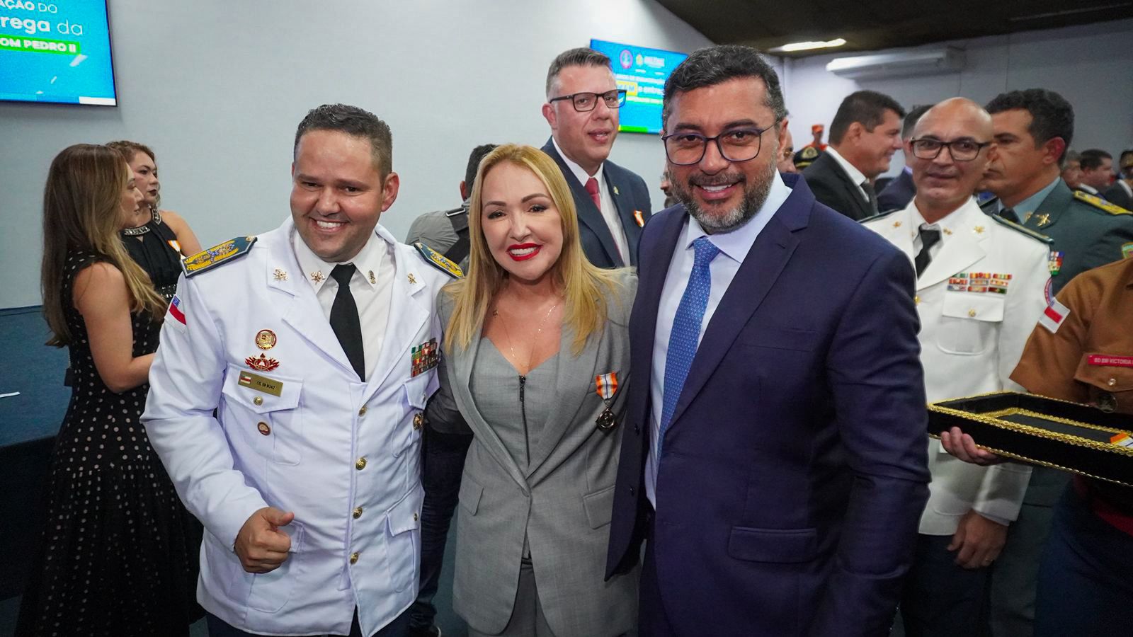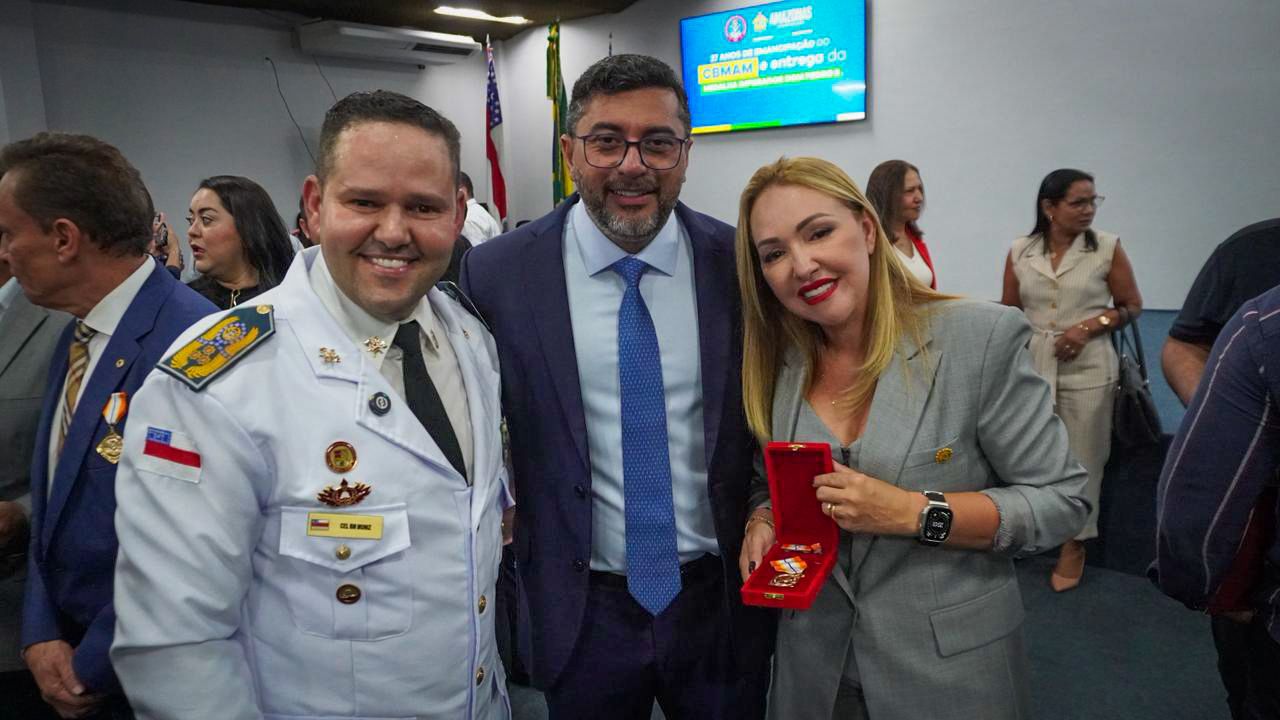 O governador do Acre, Gladson Camelí, e a presidente do Departamento de Estradas de Rodagem, Infraestrutura Hidroviária e Aeroportuária do Acre (Deracre), Sula Ximenes, foram homenageados nesta terça-feira (25), em Manaus, a Medalha Imperador Dom Pedro II, a maior honraria concedida pelo Corpo de Bombeiros Militar do Amazonas (CBMAM) e entregue pelo governador do Amazonas, Wilson Lima.