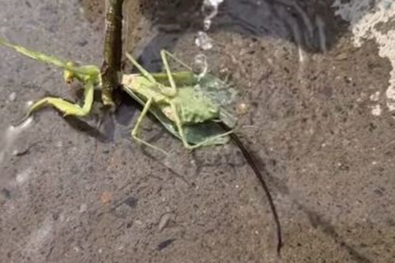 Isso explica porque durante o vídeo viralizado o verme sai do louva-deus assim quando jogam água no inseto. Ao ser enganado pelo líquido, ele achou que tinha chegado o momento de sair e fugiu do corpo do hospedeiro.