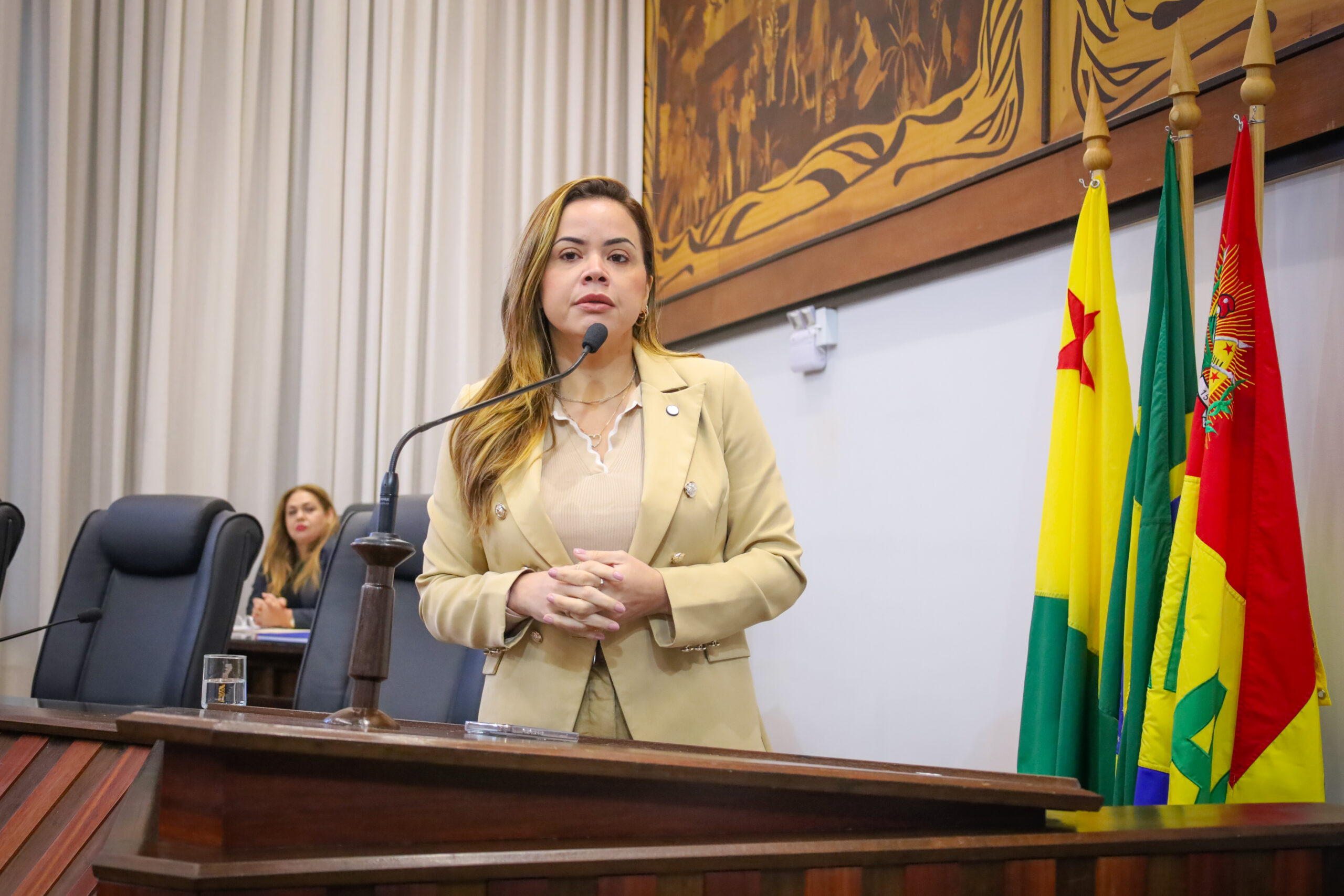 Durante a sessão desta quarta-feira (20), na Assembleia Legislativa do Acre (Aleac), a deputada estadual Michelle Melo (PDT) manifestou solidariedade ao prefeito de Feijó, Railson Ferreira (Republicanos), e à população do município, após a exoneração do marido do gestor de um cargo comissionado no Governo do Estado.