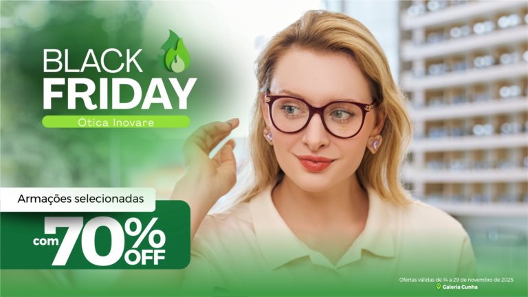 A Ótica Inovare, referência em atendimento, tecnologia e curadoria de marcas premium em Rio Branco, está com uma campanha especial de Black Friday válida até o dia 29 de novembro, oferecendo descontos expressivos em suas duas unidades: loja Guaporé e loja Galeria Cunha.