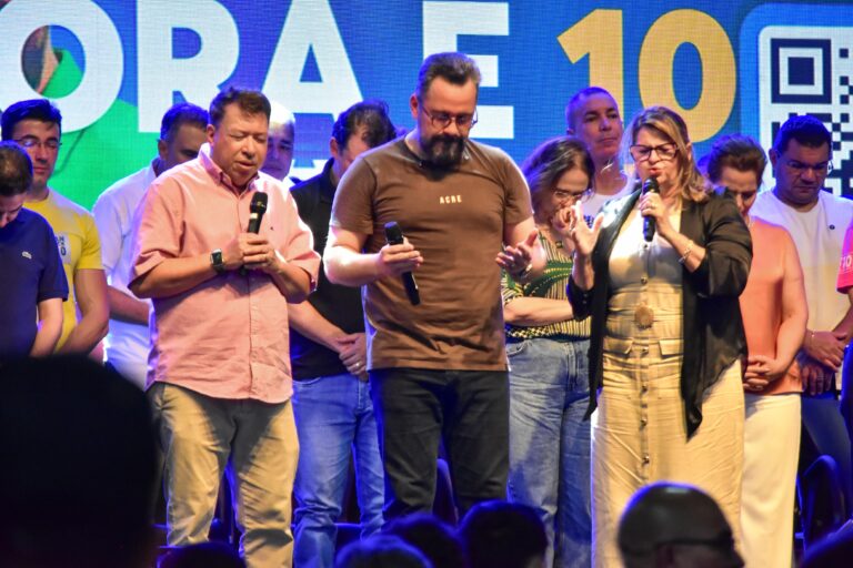 “Eu quero orar por ele, Pai, e declarar sobre ele a tua proteção, Pai. Desfazer da sua vida, em nome de Jesus, toda palavra maldita, toda palavra de tropeço, toda palavra de maldição contra a sua família, Pai. Contra o seu filho, Pai, contra a missão, a sua família, Deus. Pai, ele está iniciando uma nova etapa na sua vida e que o Senhor, oh Pai, acompanhe cada passo, cada etapa, cada decisão, cada coisa que Ele vai fazer, oh Pai, que o Senhor esteja à frente, que o Senhor esteja dirigindo a sua vida, oh Pai. Oramos pelo Estado do Acre, por cada município, oh Pai, cada pessoa que está aqui”, concluiu.