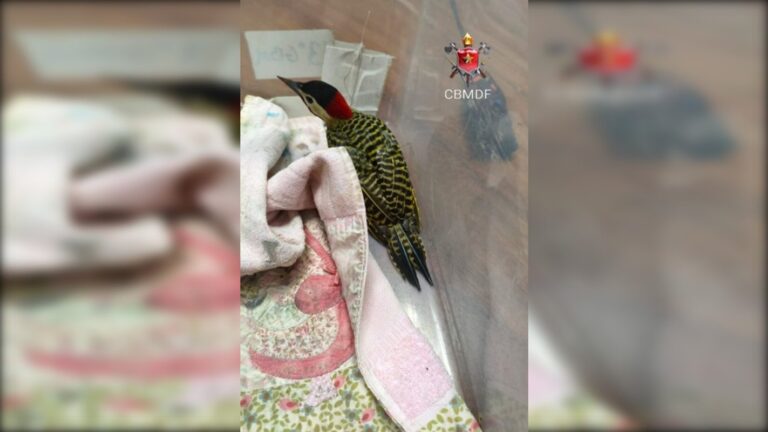 Pica-pau carijó é resgatado dentro de quartel dos Bombeiros no Guará