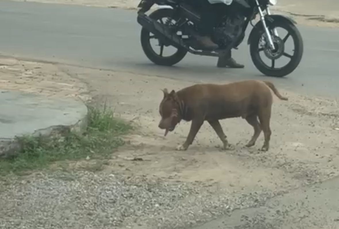 Moradores se assustam ao ver pitbull circulando livremente pela Avenida Guanabara, em Sena Madureira/Foto: Reprodução