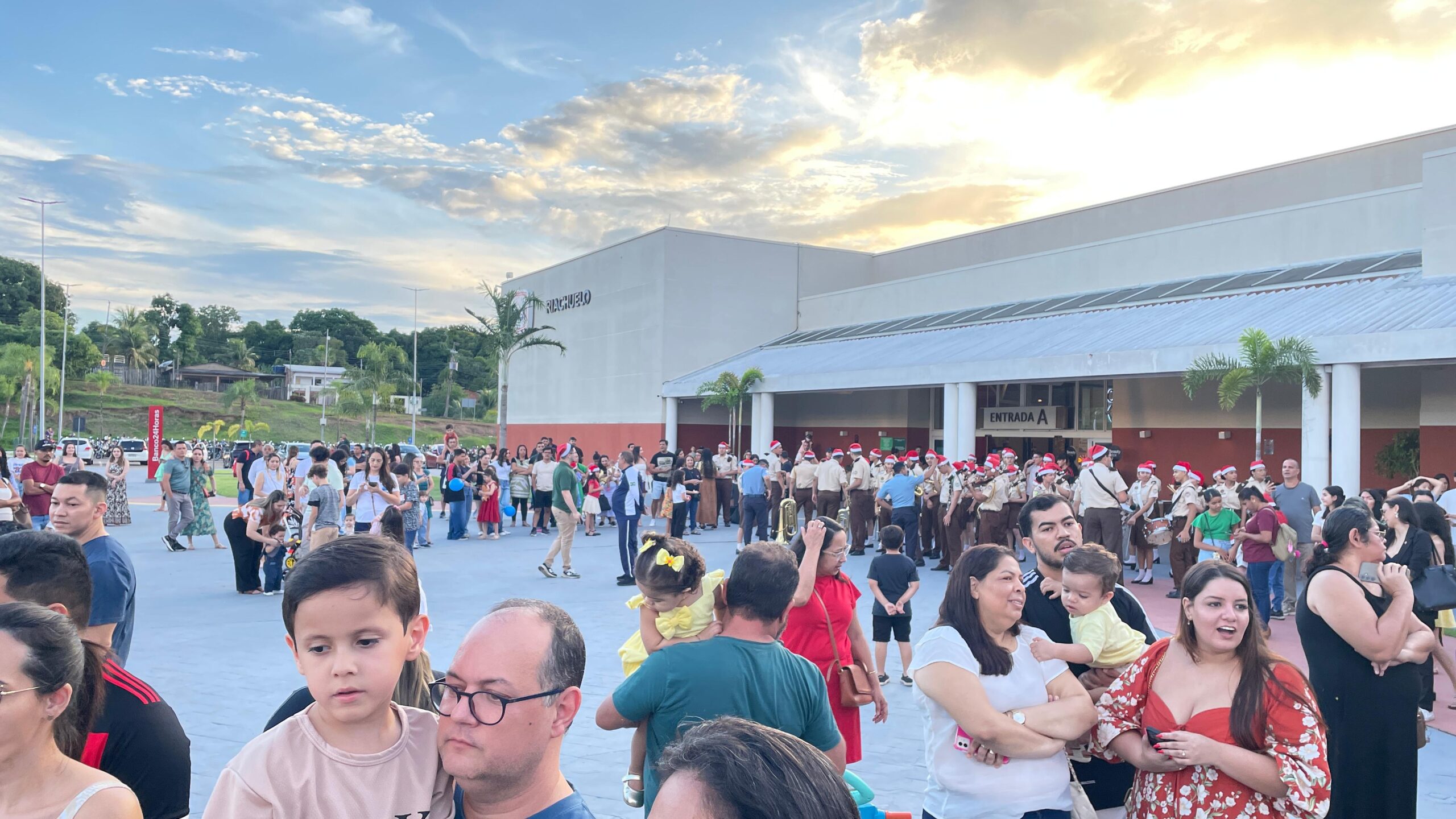 O clima natalino tomou conta do Via Verde Shopping na tarde deste sábado (15). Famílias inteiras, especialmente as crianças, já começam a se reunir em frente ao estacionamento principal à espera do grande momento: a chegada do Papai Noel.