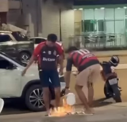 Um incidente curioso chamou atenção nas redes sociais neste fim de semana em Candeias do Jamari. Durante uma comemoração, torcedores do Flamengo tentaram queimar uma camisa do Palmeiras, mas o resultado foi inesperado: a peça explodiu ao entrar em contato com um líquido inflamável, atingindo os próprios envolvidos.