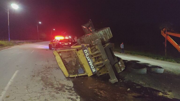 Segundo informações de testemunhas, a carreta prancha, modelo M.Benz/Axor de cor vermelha, seguia da Vila Campinas em direção ao Primeiro Distrito quando, ao subir a ladeira após a ponte e fazer uma curva, o trator se desprendeu da prancha e tombou sobre a pista.
