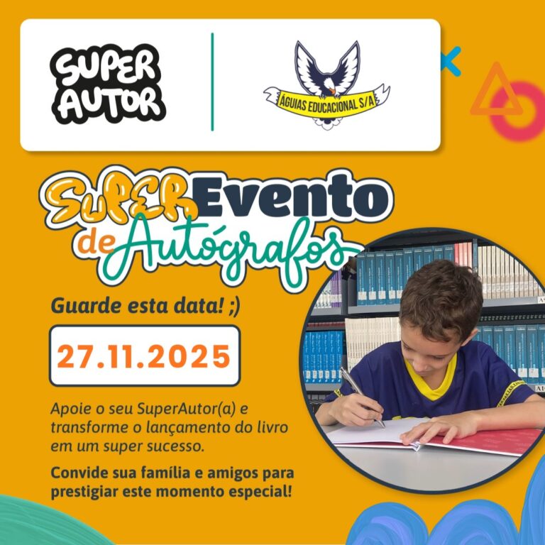 O Via Verde Shopping será cenário de um momento marcante para os estudantes da rede Águias Educacional. No dia 27 de novembro, o espaço recebe o Super Evento de Autógrafos, ação que celebra a produção literária desenvolvida ao longo do ano por alunos do segundo e do quinto ano, participantes do projeto Super Autor. A proposta transforma cada criança em protagonista do próprio livro e oferece uma vivência única de valorização da leitura e da escrita.