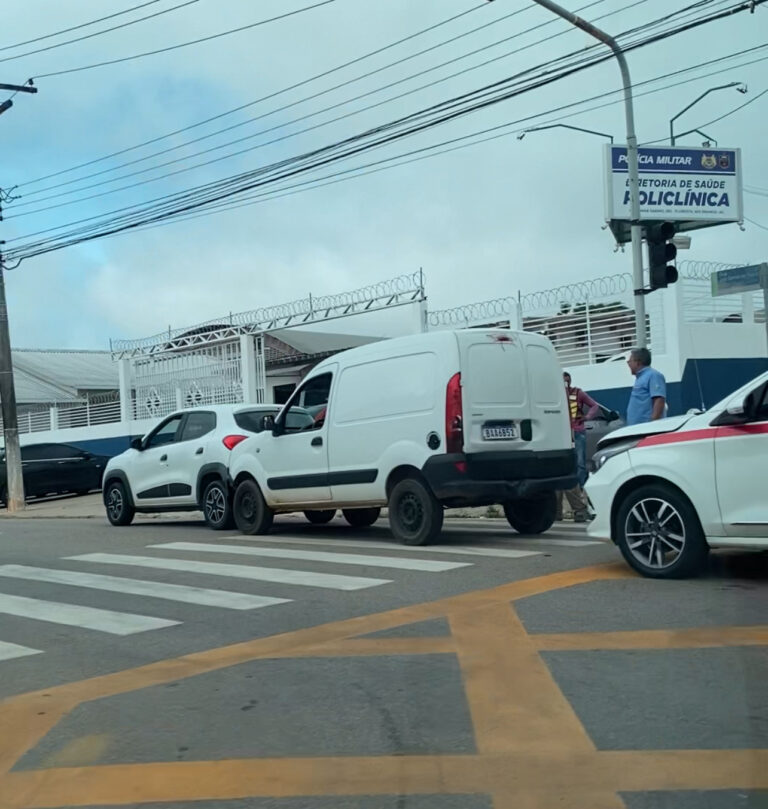 Uma colisão envolvendo três carros deixou o trânsito lento na manhã desta segunda feira (24), no cruzamento próximo à Policlínica da Polícia Militar, em Rio Branco.