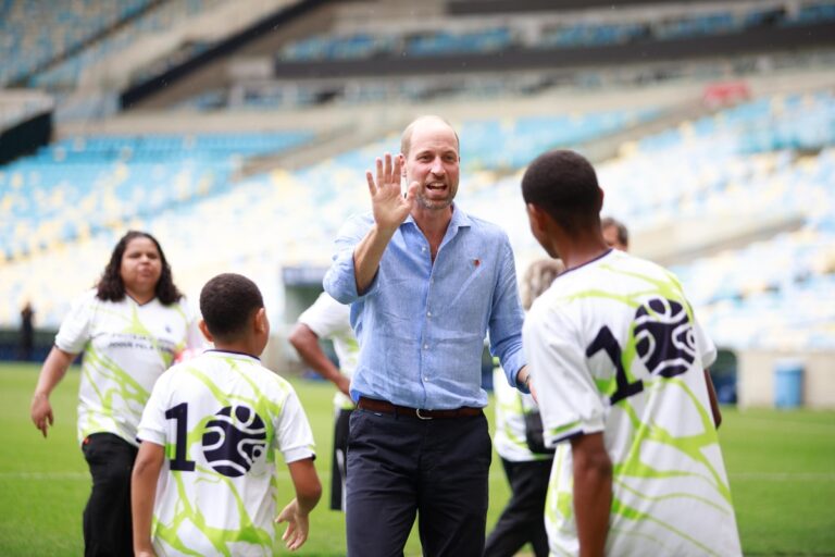 Príncipe William revela lado craque de futebol e faz gol no Maracanã