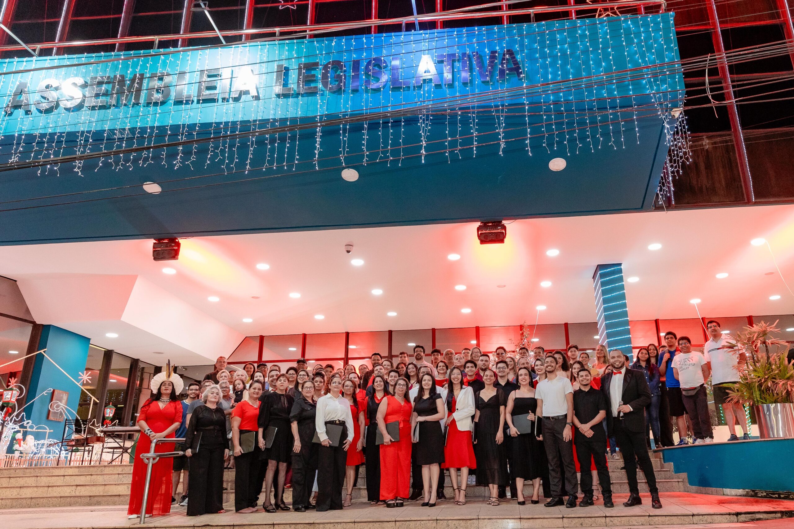 A Assembleia Legislativa do Acre promoveu, no fim da tarde mais uma edição do evento natalino que já se tornou tradição na Casa. Realizado no Hall da Casa, o encontro reuniu servidores, familiares e visitantes para prestigiar a apresentação especial do Coral Comunitário da Aleac, formado por 25 membros e reconhecido por sua atuação cultural junto à comunidade. Criado há treze anos, o grupo foi fortalecido e ampliado na gestão do presidente Nicolau Júnior (PP), tornando-se uma ponte entre o Parlamento e a população por meio da música, da arte e da cidadania.