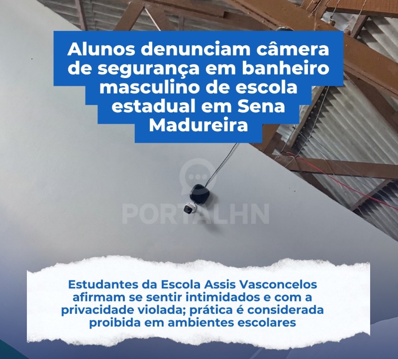 A direção da Escola Estadual Assis Vasconcelos, em Sena Madureira, se pronunciou por meio de nota de esclarecimento após a repercussão de uma denúncia sobre a existência de uma câmera de segurança no banheiro masculino da unidade de ensino. No documento, a gestão afirma que não houve captação de áreas íntimas e que o equipamento já se encontra desligado.