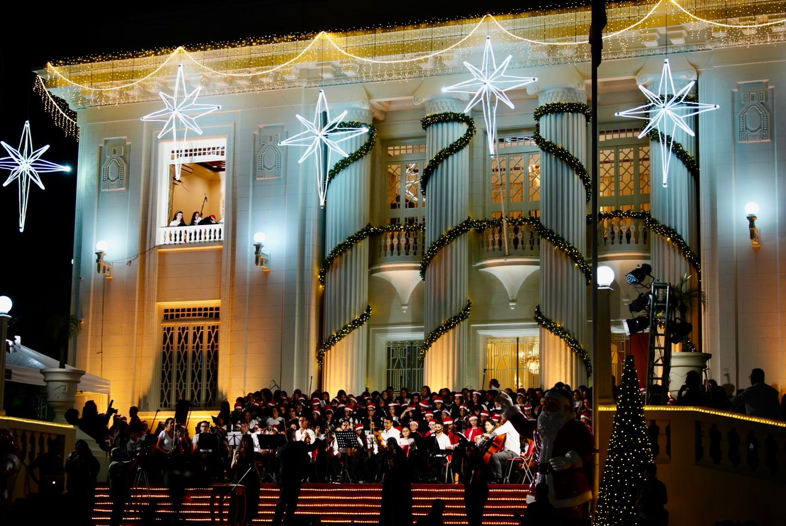 A Cantata de Natal, organizada pela Escola de Música e conduzida pelo maestro Afonso Portela, marcou na noite deste domingo (7) o início oficial da programação natalina em frente ao Palácio Rio Branco, logo após o acender das luzes.
