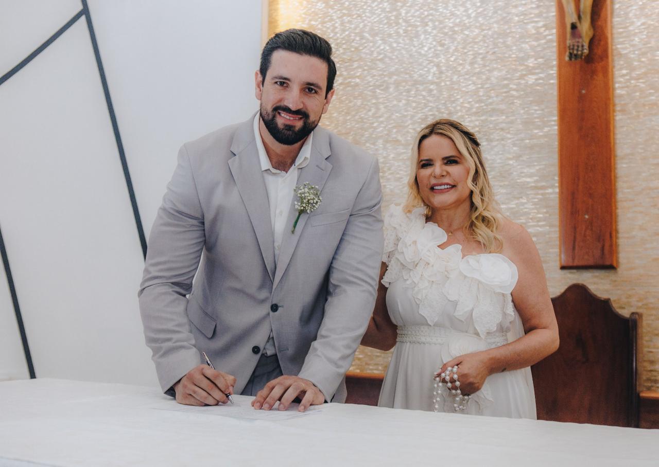 A celebração, marcada pela simplicidade e pelo clima afetivo, reuniu apenas familiares e amigos próximos do casal