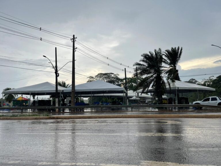 A concentração estava marcada para as 15h, no Lago do Amor, mas as condições climáticas impediram o início no horário previsto. Até o momento, poucas pessoas chegaram ao local e permanecem abrigadas em tendas montadas no calçadão do lago, à espera de melhora no tempo.