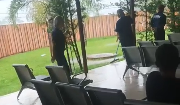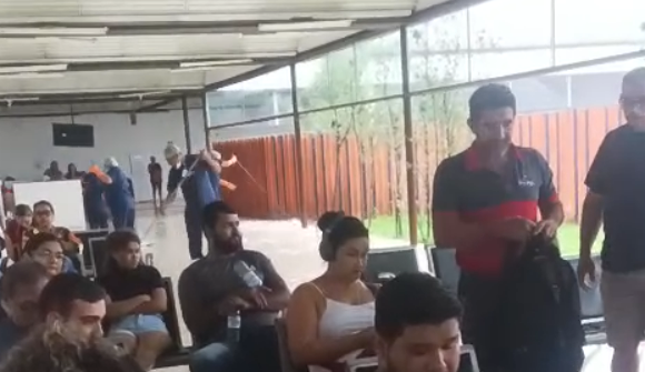 Nos registros, é possível ver que funcionários tentam amenizar a situação utilizando rodos para escoar a água acumulada no espaço. Mesmo com o esforço, a intensidade da chuva, acompanhada de ventos, tem dificultado o trabalho e molhado toda a área.