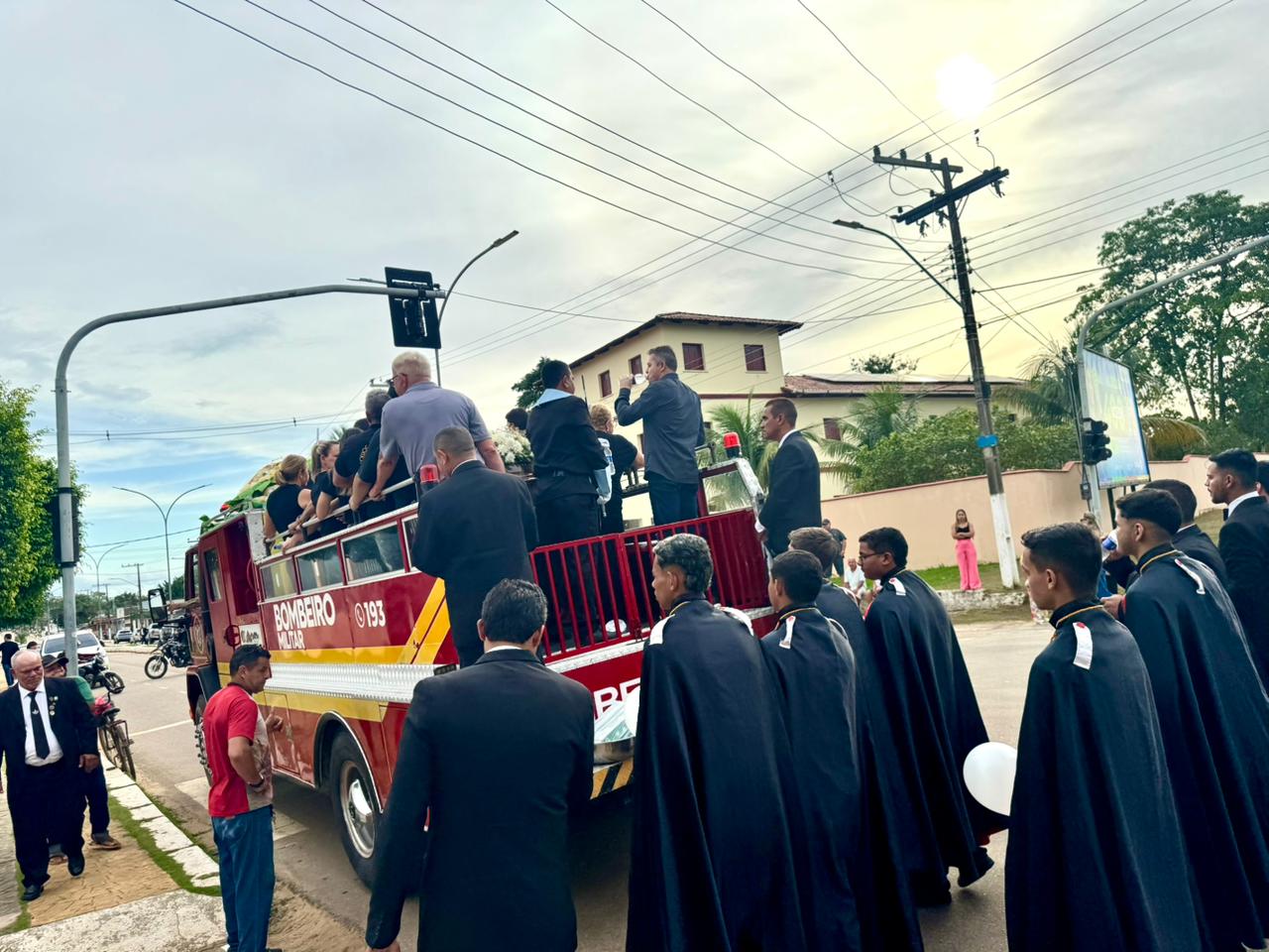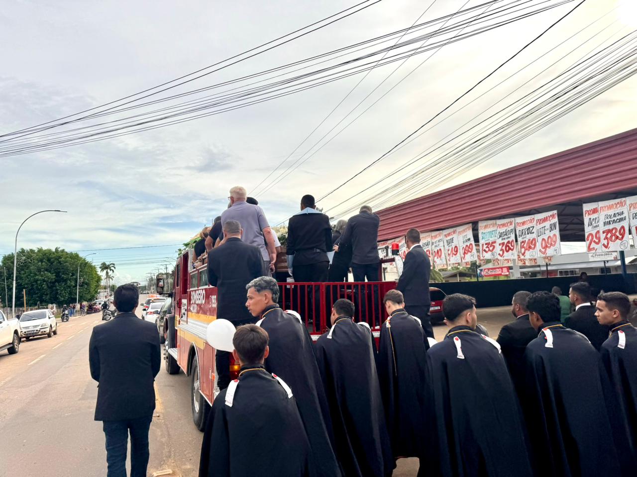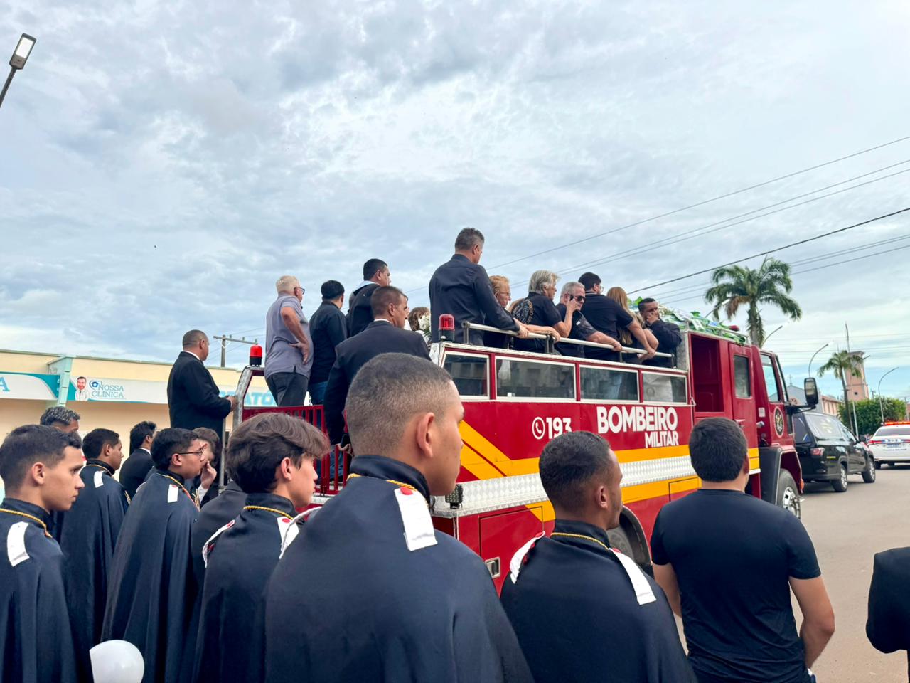 Corpo de Nilson Areal é levado em veículo oficial dos Bombeiros em cortejo pelas ruas de Sena