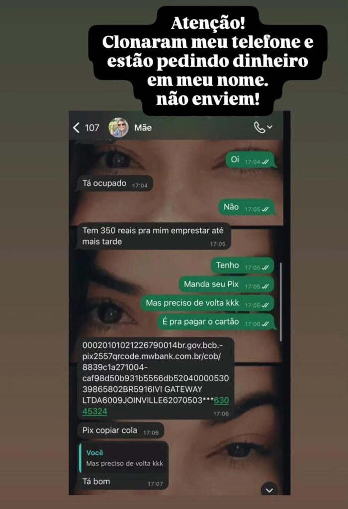 Sem acesso ao WhatsApp, a professora utilizou o Instagram para alertar amigos e familiares sobre o golpe, com o objetivo de evitar novas vítimas. Ela registrou boletim de ocorrência e informou que tenta resolver a situação junto à operadora telefônica.
