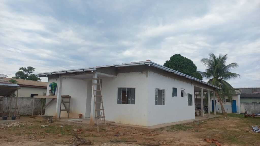 O Deracre está na etapa final da construção da Casa do Produtor, em Sena Madureira. A estrutura vai atender mais de mil moradores da comunidade e de áreas vizinhas e é executada por meio de parceria entre o governo do Estado e o governo federal, conforme determinação do governador Gladson Camelí.