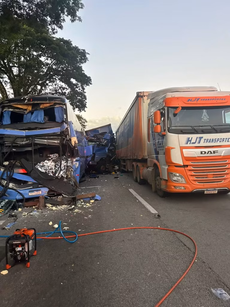 Segundo a RioSP, concessionária que administra a rodovia, o acidente aconteceu por volta das 3h, no km 107 da via, na pista sentido Rio de Janeiro. Houve uma colisão entre quatro caminhões, um ônibus e um carro.