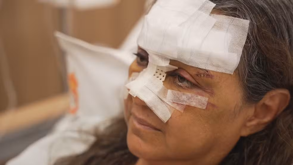 Luísa ficou com múltiplas fraturas na cabeça e no rosto, incluindo o nariz e três dentes quebrados. Ela está internada no Hospital Português, no bairro do Paissandu, na área central do Recife, sem previsão de alta. O marido, de 64 anos, teve a prisão preventiva decretada pela Justiça.