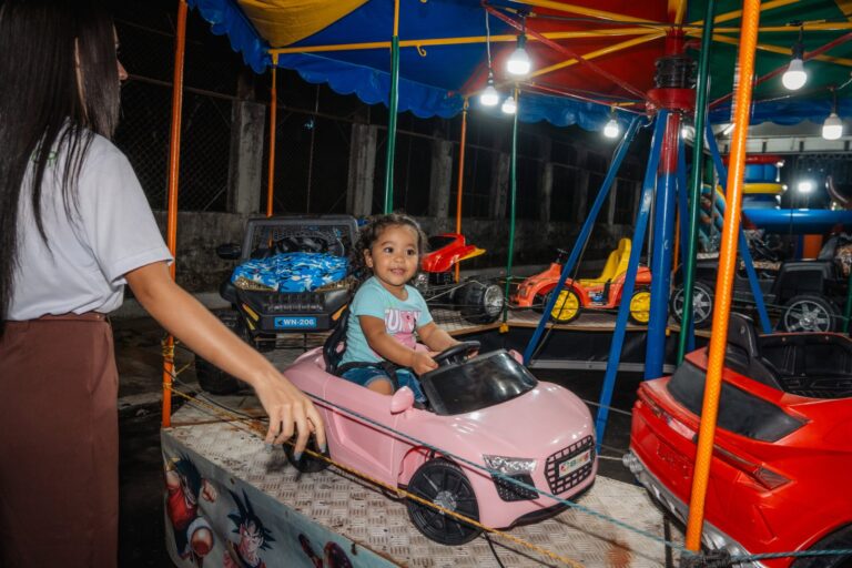 Passeando no Centro, Vitória Vieira levou a filha Ágatha, de dois anos, para brincar no Carrossel de Carrinho na Feira Natalina. “Eu nunca tive essas experiências quando eu era pequena e agora estou tendo a oportunidade de trazer ela, então tá sendo maravilhoso”, conta a mãe.