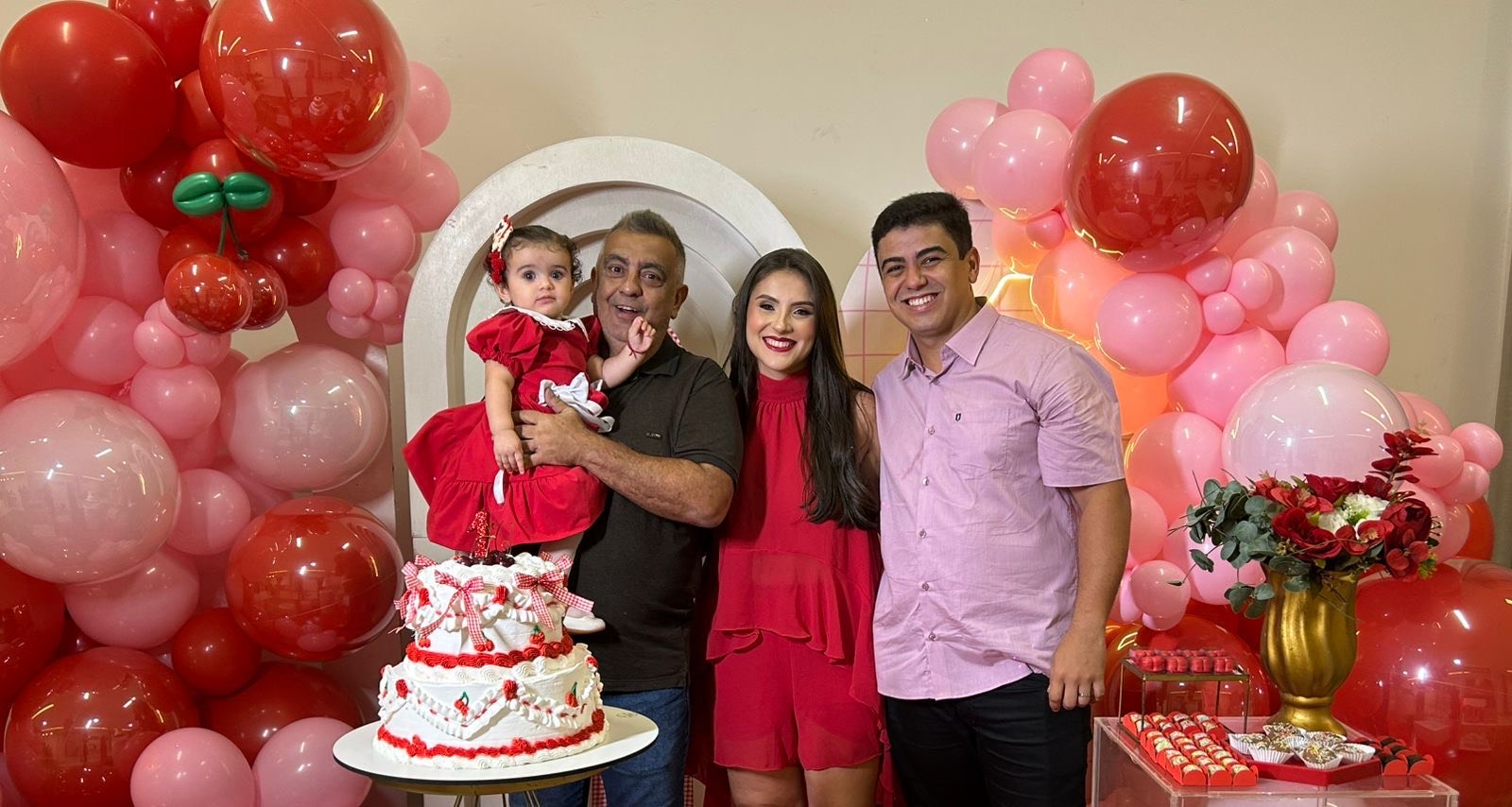 Os papais Jheinny Kauelly e Urano Carvalho receberam familiares e amigos para celebrar o primeiro aninho da princesa Maria Helena, na sexta-feira, dia 26. Com o delicado e encantador tema “Cereja”, a comemoração aconteceu no espaço de festas do Residencial Alphaville, em Porto Velho. Cada detalhe foi pensado com muito carinho, resultando em uma festa linda, elegante e impecável, à altura da pequena aniversaria
