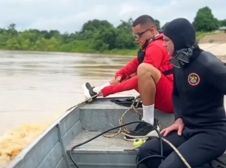 Equipes do 6° Batalhão deram início às buscas ainda durante a tarde. De acordo com o tenente Adacir Vivan, o rio apresentava grande quantidade de sujeira e forte correnteza, impossibilitando a realização de mergulhos no local indicado. Por conta do risco elevado, as buscas foram suspensas ao anoitecer e devem ser retomadas no início da manhã deste domingo (7).