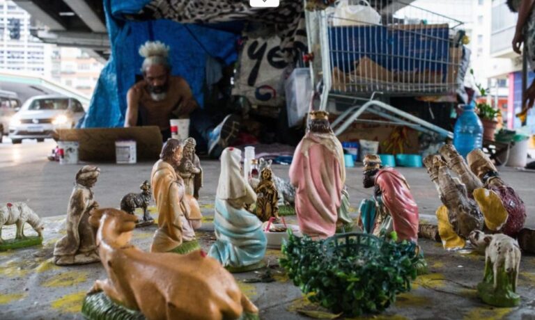 Debaixo de um viaduto na cidade de São Paulo, um homem em situação de rua montou um presépio em um espaço marcado pelo barulho constante e pela circulação apressada de veículos e pedestres. A iniciativa transformou o local em um ponto de observação e chamou a atenção de quem passa pela região.