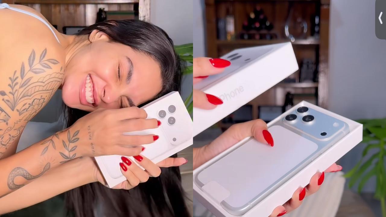 A influenciadora Ludmilla Cavalcante usou as redes sociais para compartilhar um momento especial com seus seguidores após receber um presente do namorado: um iPhone 17.