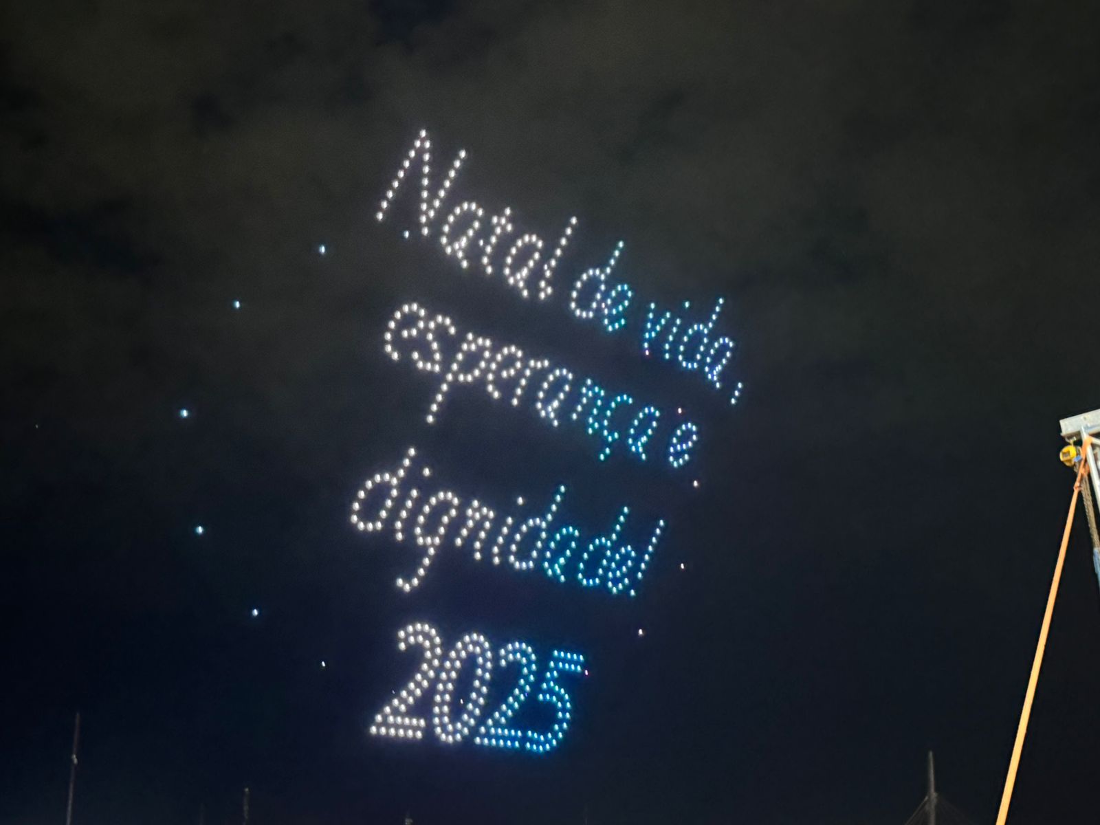 Durante a apresentação, os drones formaram as mensagens “Feliz Natal” e “Natal de vida, esperança e dignidade”, arrancando aplausos e reações emocionadas do público. Em seguida, as luzes deram forma a símbolos tradicionais da data, como o Papai Noel e o Menino Jesus, além da Estrela de Davi, representando o nascimento de Cristo e a fé que envolve o período natalino.