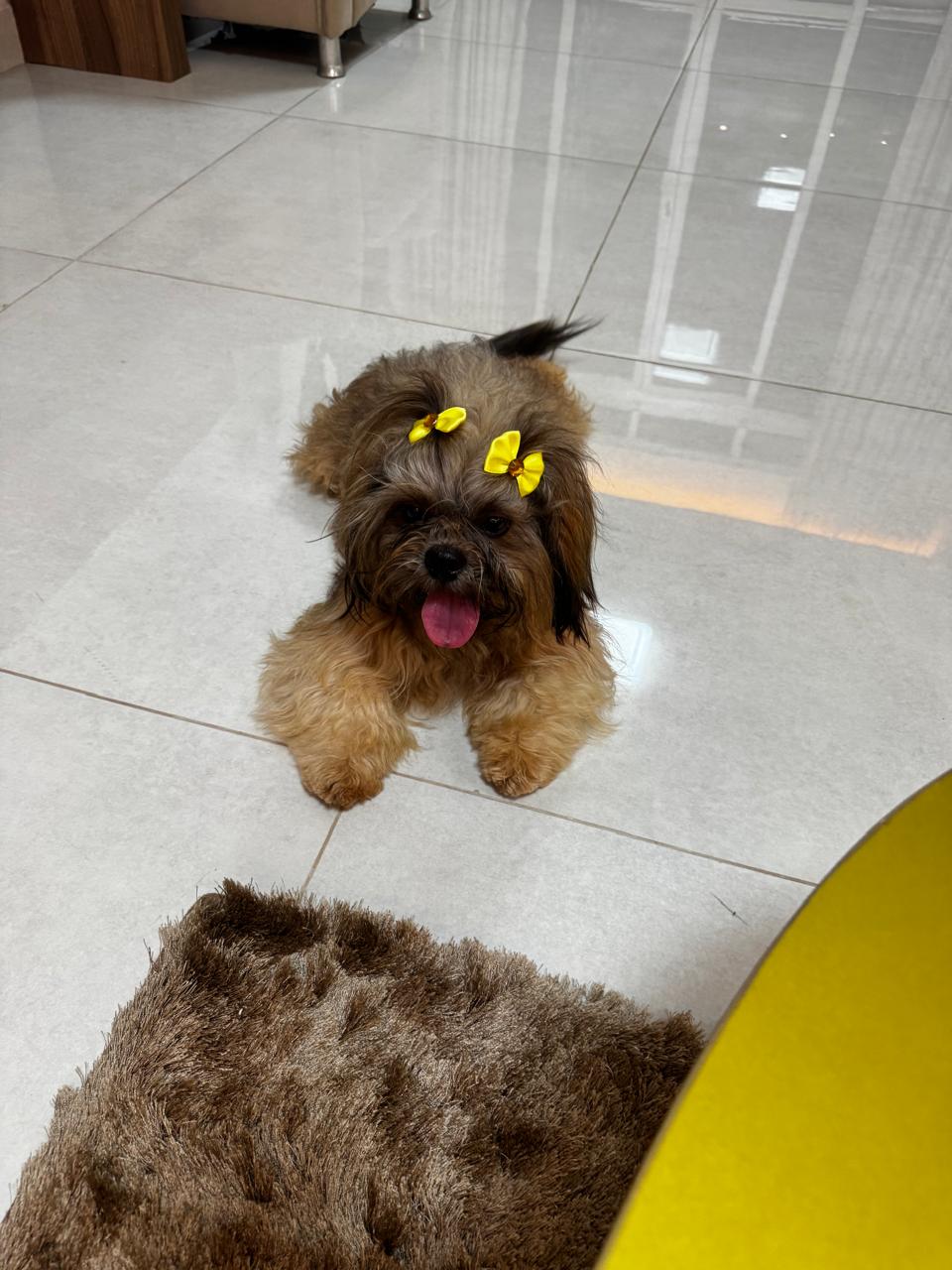 Os cães são da mesma família: o pai, um poodle chamado Joe, a mãe, uma shih tzu chamada Diva, e a filhote Nutella, também da raça shih tzu.