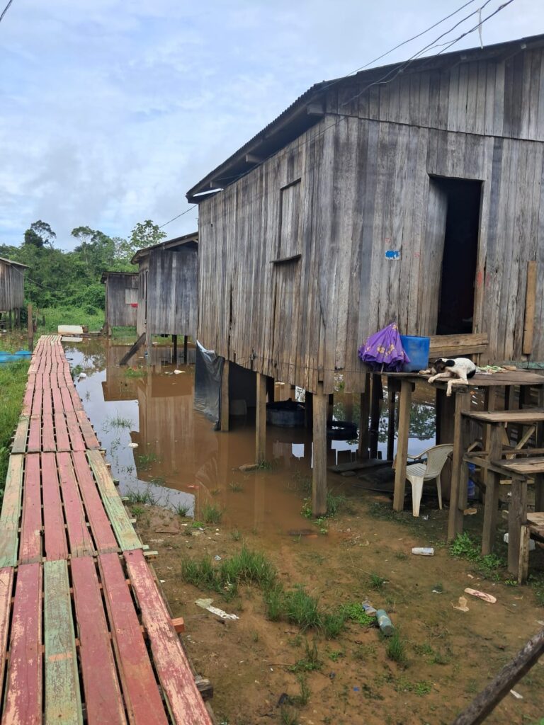 Na Praia do Amarílio, várias casas foram construídas à margem do igarapé Cafezal que finda represando com a cheia do rio Iaco. É por isso, que as famílias são afetadas. Por enquanto, ainda não há moradores desabrigados.