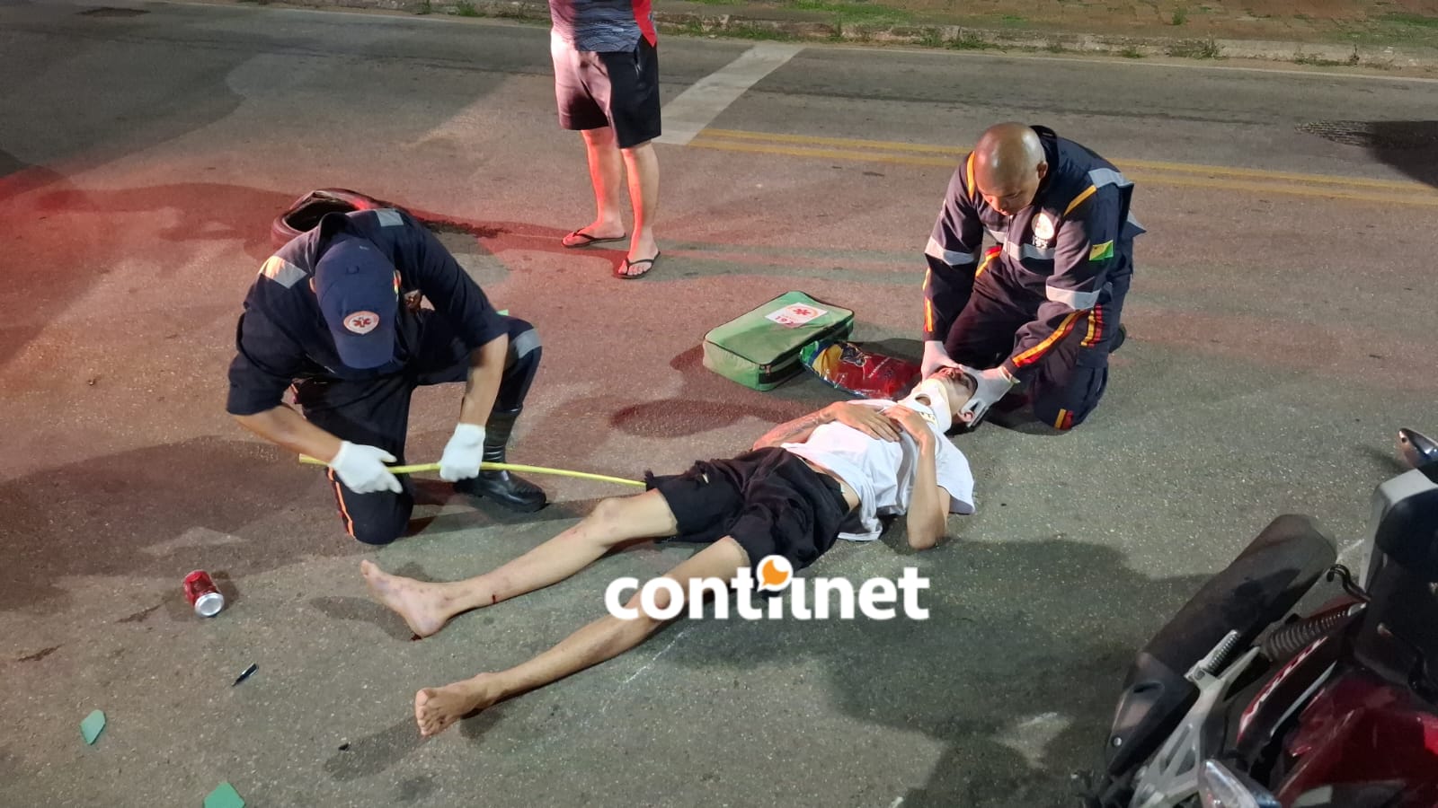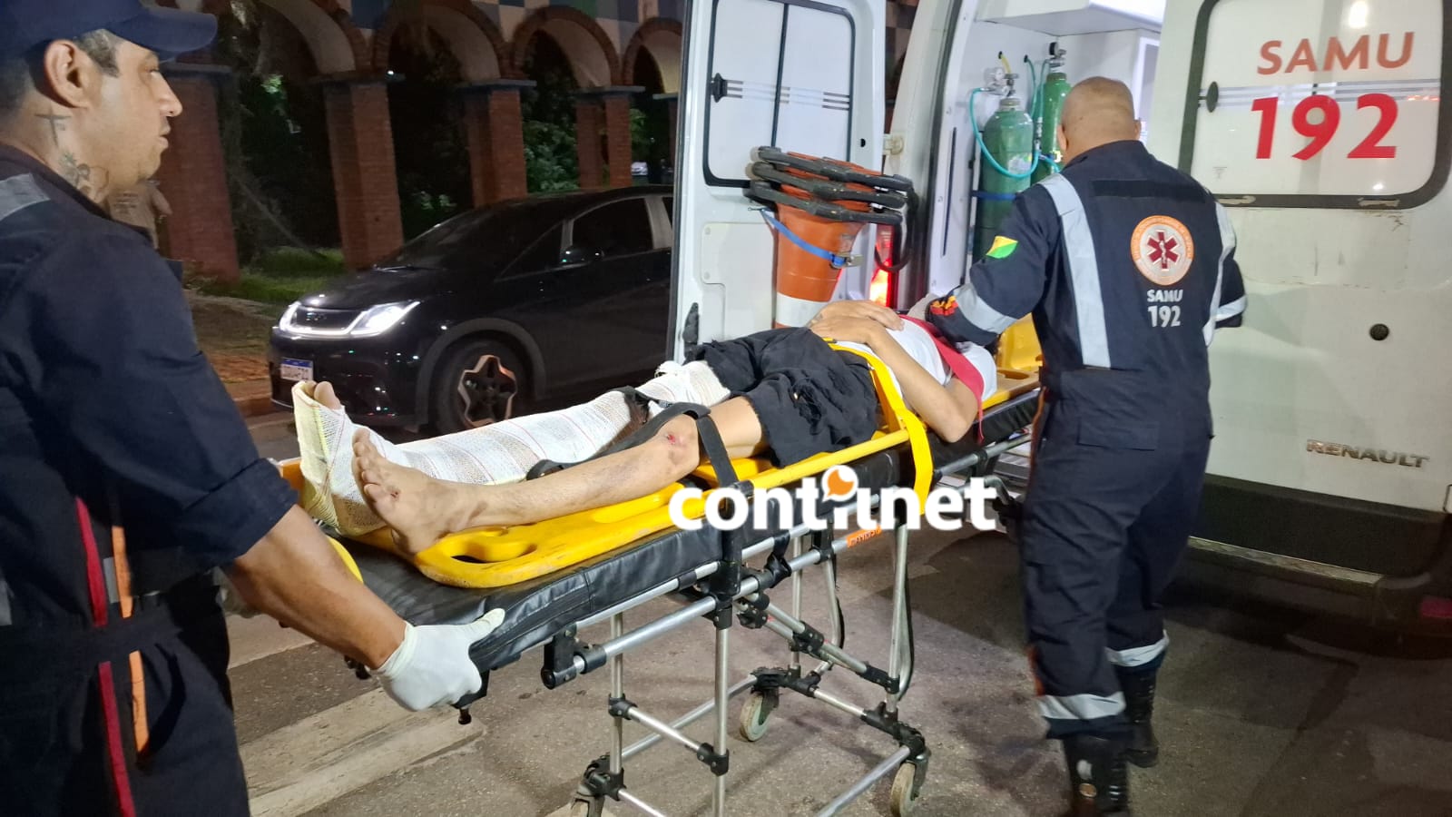Acidente ocorreu na Rua Osmar Sabido, no bairro Esperança, e deixou jovem de 23 anos com fraturas na perna