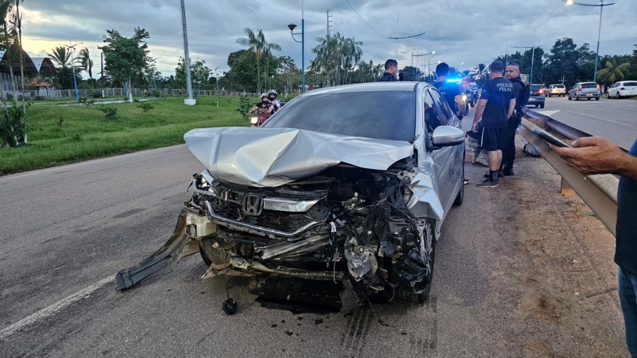 Um motorista perdeu o controle do veículo após tomar uma fechada no trânsito e acabou colidindo com o guard rail na BR-364, no Distrito Industrial, em Rio Branco, na tarde desta terça-feira (9). O impacto danificou seriamente a parte frontal do carro e deixou riscos na traseira. Segundo relatos, o veículo ainda rodou na pista após a batida.