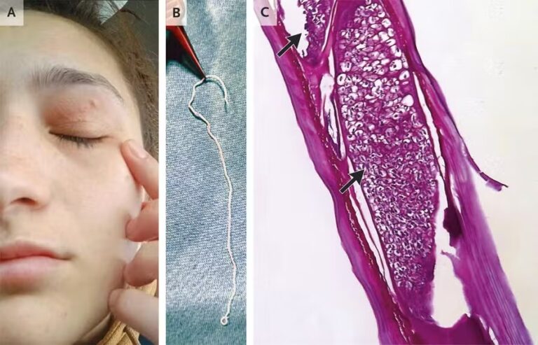 Uma mulher de 26 anos, residente na Romênia, teve um verme redondo vivo de 11 cm removido cirurgicamente de sua pálpebra esquerda, em um caso que chamou atenção da comunidade médica internacional. O episódio foi descrito em um relatório clínico publicado em 22 de novembro no New England Journal of Medicine por especialistas da Universidade de Medicina e Farmácia Carol Davila, em Bucareste.