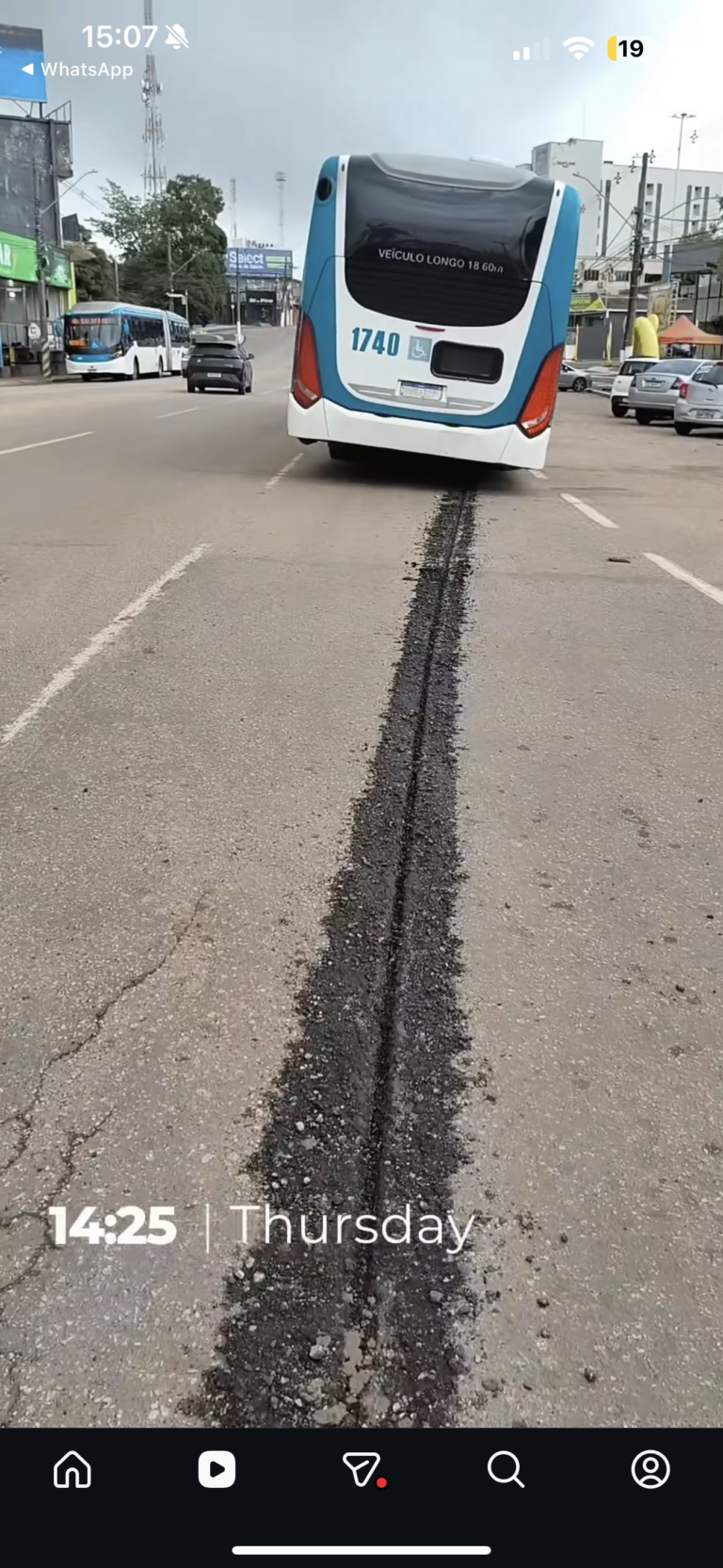 “Vejam o estrago causado no asfalto pelo ônibus que quebrou agora pouco aqui na Avenida Ceará. Deixou um rasgo no asfalto”, disse o juiz aposentado.