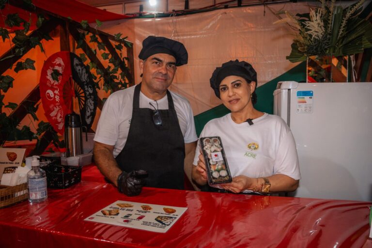 Investir no futuro da filha é o objetivo do casal Nilma e Charles Moraes, proprietários do empreendimento Sabor Oriental Acre, que está presente na Feira Natalina durante todo o mês de dezembro, no centro de Rio Branco. O espaço, organizado pela Secretaria de Estado de Turismo e Empreendedorismo (Sete), em parceria com a Associação Comercial, Industrial, de Serviço e Agrícola do Acre (Acisa), faz parte da programação de Fim de Ano da Família, promovida pelo governo do Acre.