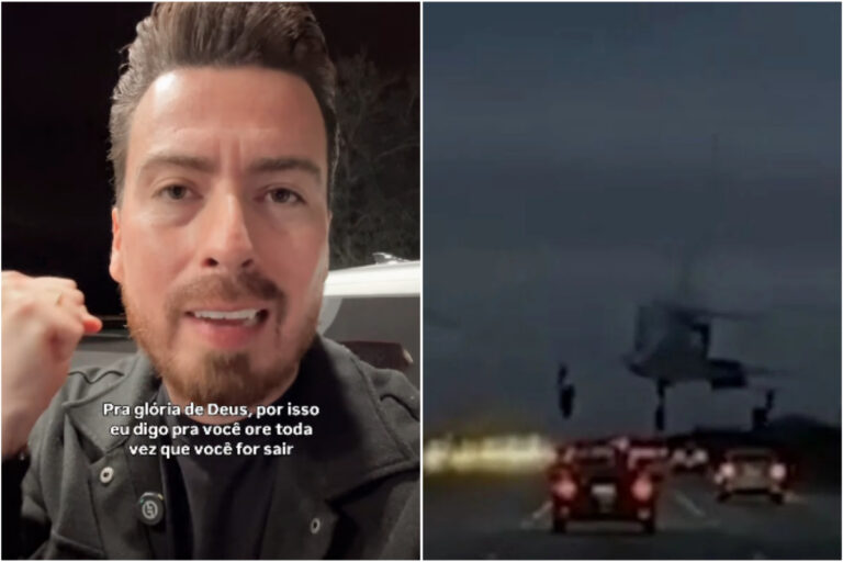 O pastor brasileiro Felipe Menegaz Rodrigues, que mora nos Estados Unidos (EUA) há oito anos, diz que testemunhou e escapou por pouco do avião de pequeno porte que provocou um acidente na rodovia interestadual 95, em Merrit Island, na Flórida, ao aterrissar sobre um carro, na noite de segunda-feira (8/12). A aeronave fez um pouso de emergência, após o piloto relatar falhas no motor.