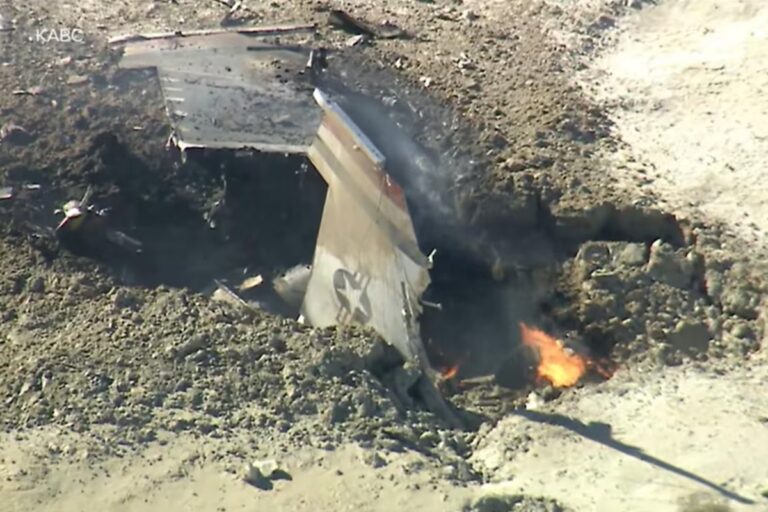 A aeronave caiu a cerca de 290 quilômetros ao norte de Los Angeles. A Força Aérea dos Estados Unidos iniciou uma investigação para identificar a causa do acidente.