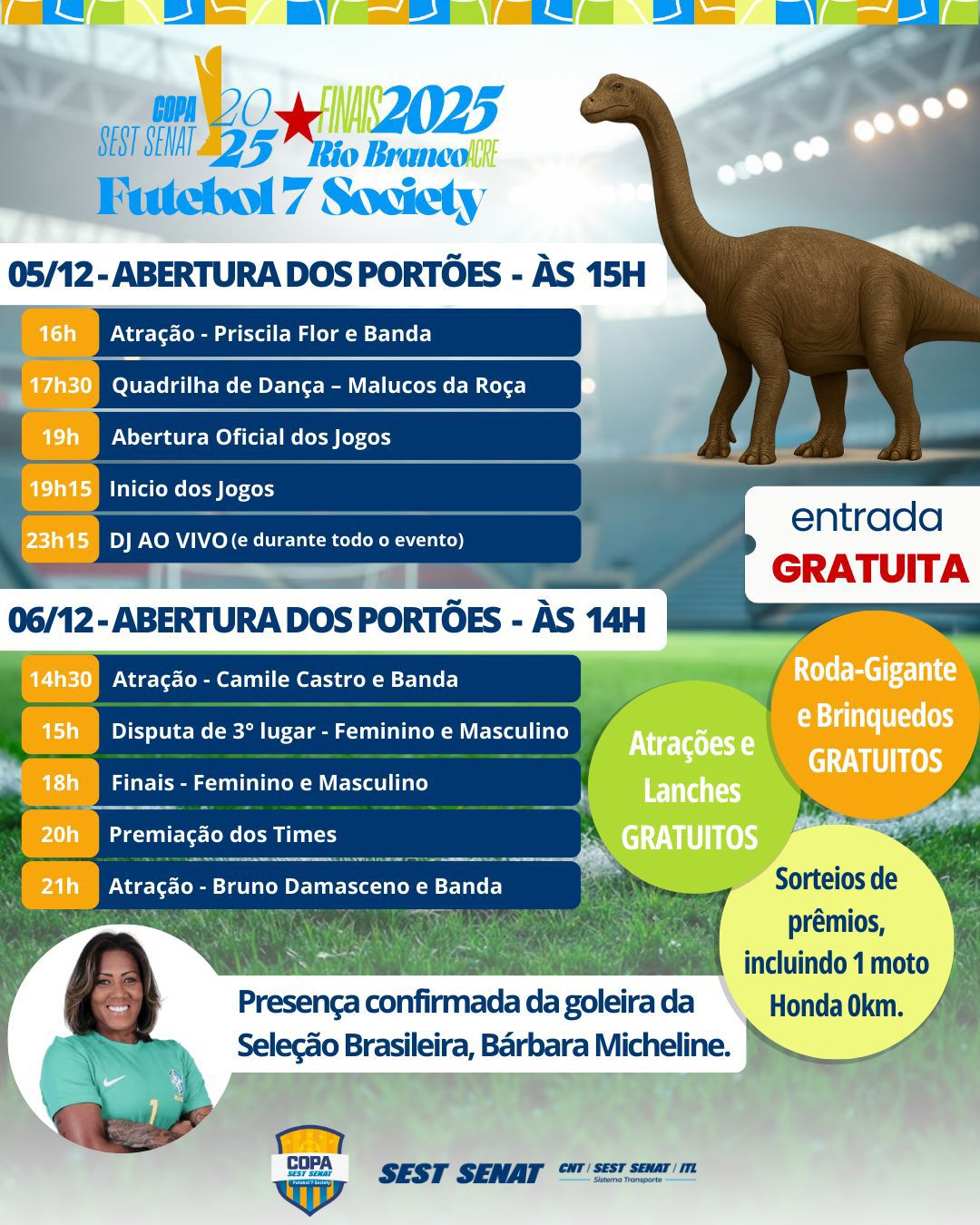 Além dos jogos decisivos, o público poderá aproveitar uma programação especial preparada pelo SEST SENAT, com apresentações de bandas locais, brinquedos para as crianças — incluindo uma roda-gigante —, lanches gratuitos, sorteio de prêmios e de uma moto Honda 0 KM. Os portões serão abertos às 15h na sexta-feira, dia 5, e às 14h no sábado, dia 6.
