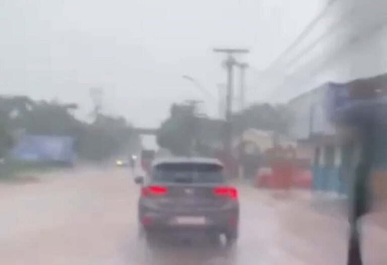 A chuva que caiu em Rio Branco na tarde desta segunda-feira (8), mesmo em curto período de tempo, foi suficiente para alagar trechos da Estrada da Sobral, na região do Bola Preta. Motoristas que passavam pelo local enfrentaram dificuldades para trafegar devido ao volume de água acumulado na via.