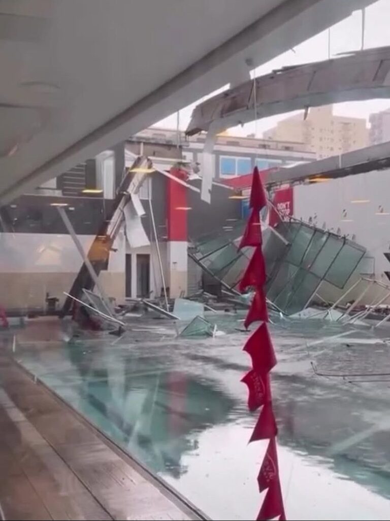 O teto da academia Inova São Caetano, na Avenida Goiás, desabou na tarde desta segunda-feira (8) após um forte temporal atingir o município do ABC paulista. A estrutura de vidro que cobria a área da piscina cedeu por completo, deixando o ambiente tomado por escombros. Duas pessoas ficaram levemente feridas.