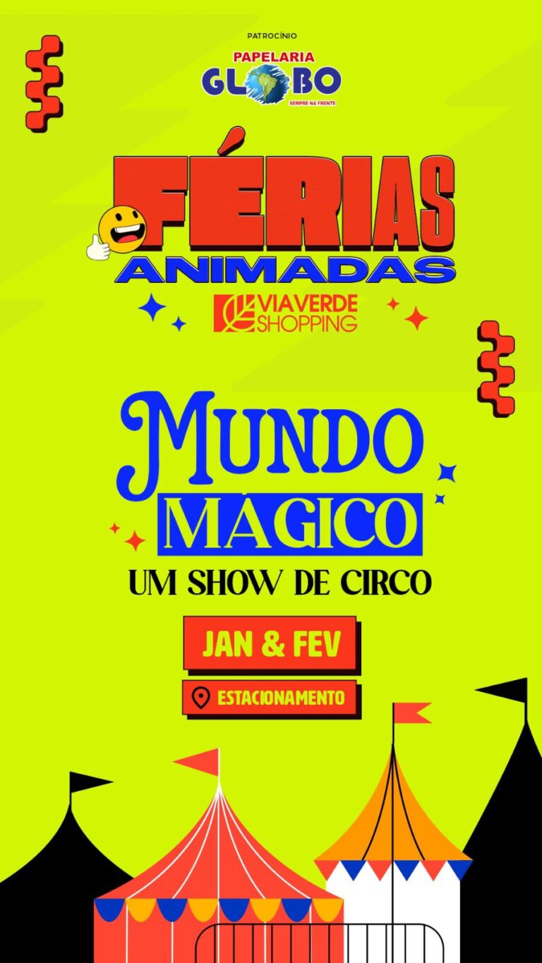 O Circo Mundo Mágico se apresentará pela primeira vez na capital acreana, o espetáculo irá desembarcar no Via Verde Shopping reunindo artistas nacionais e internacionais. Voltado para todas as idades, o circo promete encantar o público com apresentações bem humoradas, com magias e atrações circenses tradicionais, resgatando a essência do picadeiro e proporcionando momentos de alegria e encantamento.