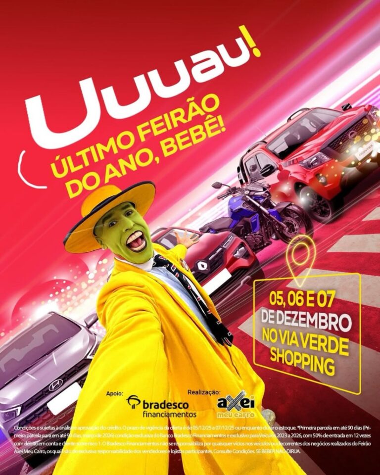 O Via Verde Shopping abre espaço para a edição especial de fim de ano do maior feirão de automóveis da região, “Axei Meu Carro” que retorna após uma temporada marcada por grande sucesso em todas as suas edições. O evento acontece nos dias 5, 6 e 7 de dezembro, no estacionamento do polo varejista e chega como aquele presente de Natal ideal para o público que deseja realizar o sonho de sair de carro ou motocicleta novos antes da virada do ano.