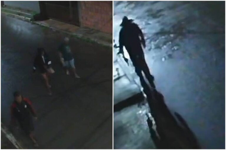 Câmeras mostram encapuzado armado antes de cometer triplo homicídio