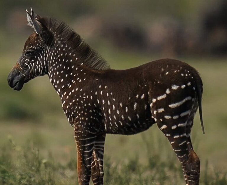 Uma zebra rara com bolinhas no lugar das tradicionais listras foi registrada na Reserva Nacional Maasai Mara, no QuĂȘnia. O filhote chamou atenção por apresentar uma pelagem escura com manchas brancas, um padrĂŁo incomum para a espĂ©cie.