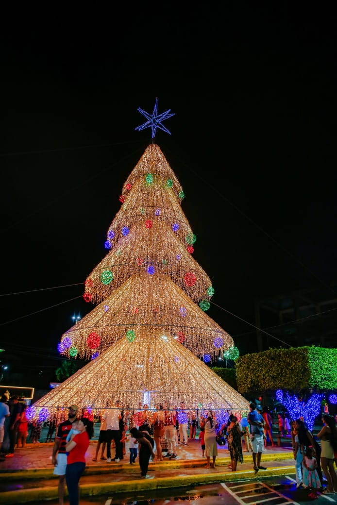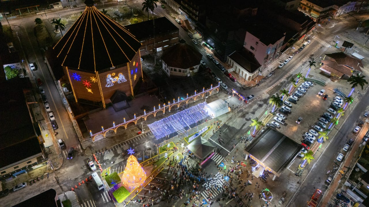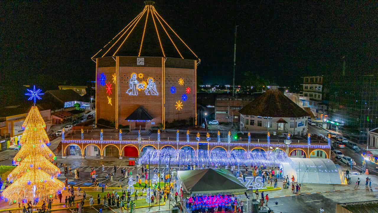 Além do Centro, as luzes de Natal também estão em outros pontos da cidade, como o complexo esportivo do Bairro do Aeroporto Velho e na rotatória do 6I• BIS.