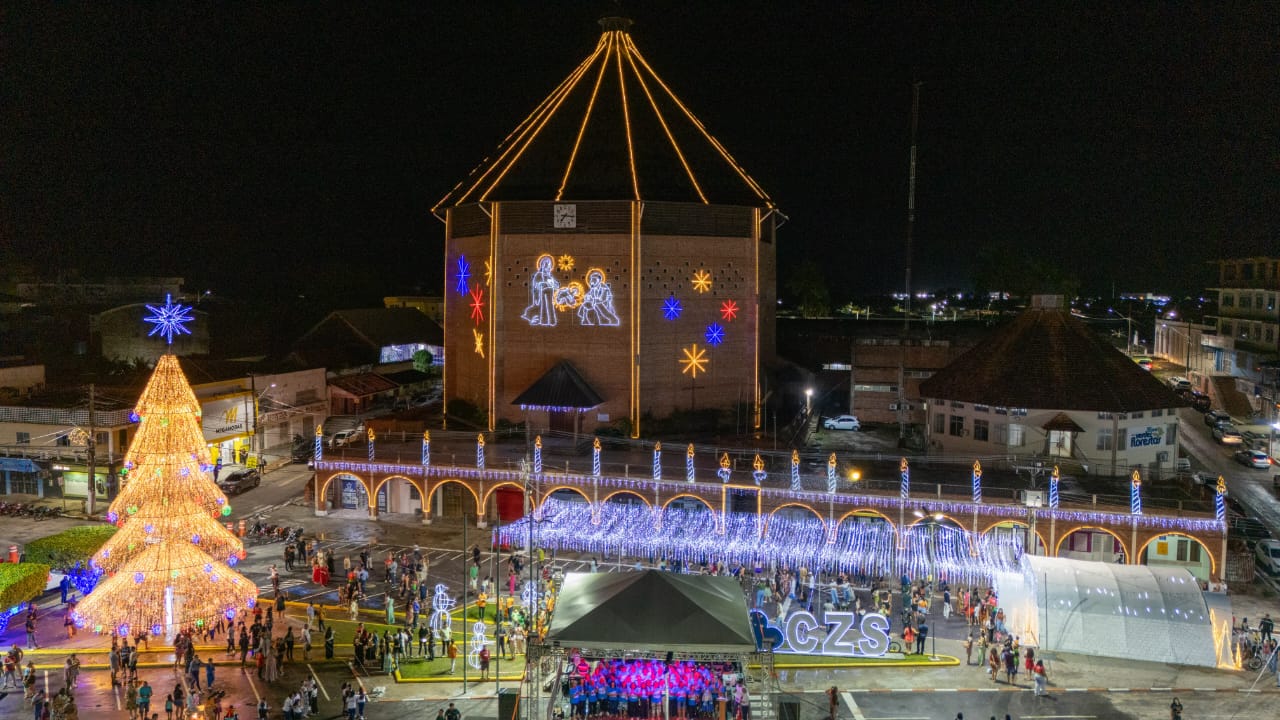 Com Tema “Natal de Esperança” e lema “Cuidar das Crianças é o Nosso Maior Presente”, o Prefeito de Cruzeiro do Sul, Zequinha Lima, acendeu a iluminação natalina da cidade nesta quarta-feira, 10. Ele também anunciou o pagamento do 13ª salários dos servidores para o dia 19.