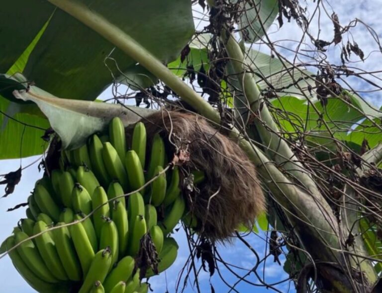 Uma equipe do Corpo de Bombeiros do 6º BEPCIF realizou o resgate de um bicho-preguiça que estava em uma bananeira, no quintal de uma residência em Sena Madureira, no interior do Acre.