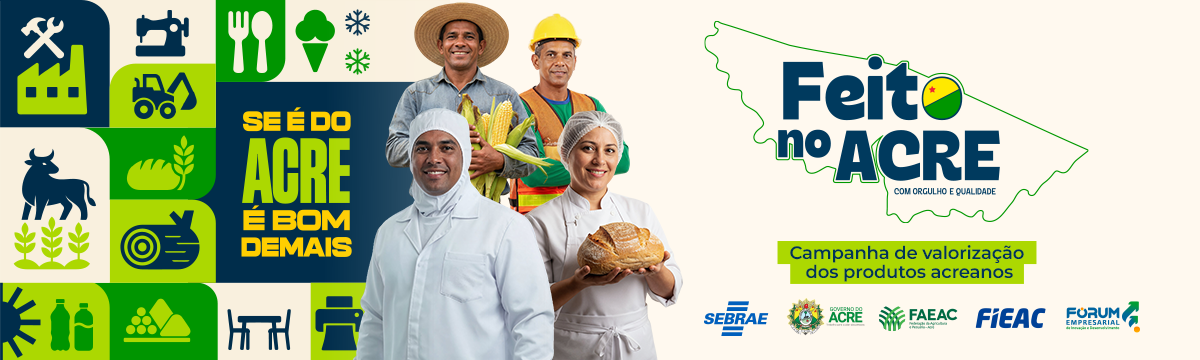 Valorizar o que é produzido no próprio estado, fortalecer a economia local e estimular escolhas de consumo mais conscientes. São esses os pilares da campanha “Feito no Acre”, lançada em dezembro de 2025 pelo Fórum Empresarial de Inovação e Desenvolvimento do Acre, pela Federação das Indústrias do Acre (FIEAC), pela Federação da Agricultura e Pecuária do Estado do Acre (FAEAC), pelo Governo do Estado, por meio da Secretaria de Indústria, Ciência e Tecnologia (SEICT), e pelo Sebrae/AC.